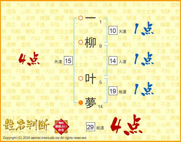 一柳叶夢さんの総運は29画の4点!