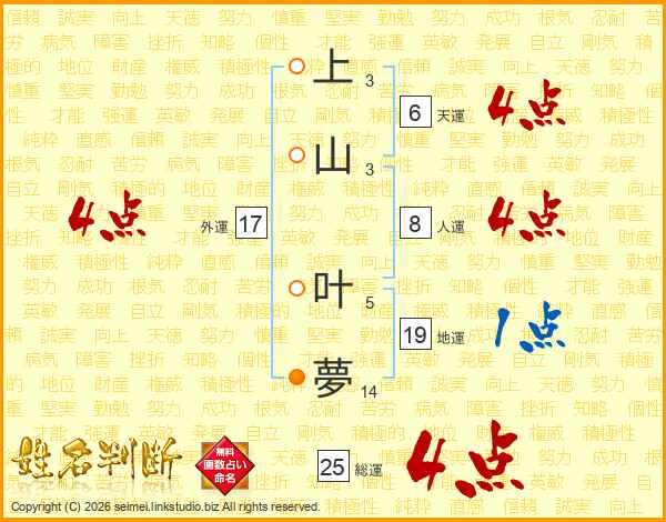 上山叶夢さんの外運は17画の4点!