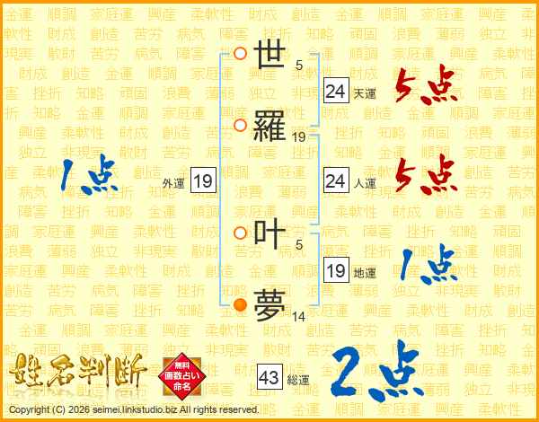 世羅叶夢さんの天運は24画の5点!