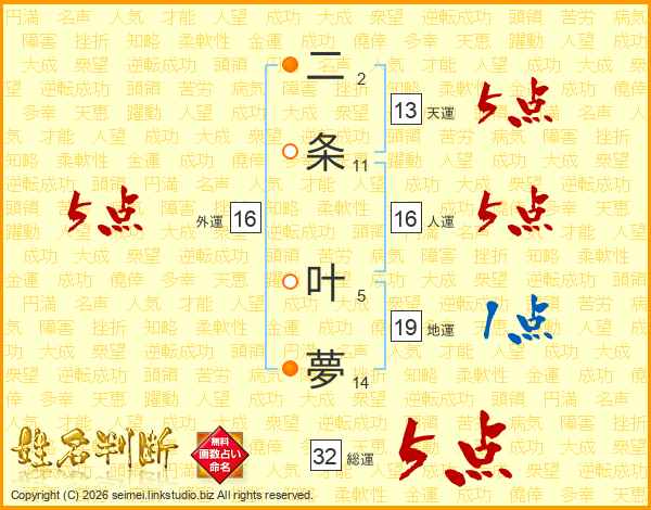二条叶夢さんの外運は16画の5点!