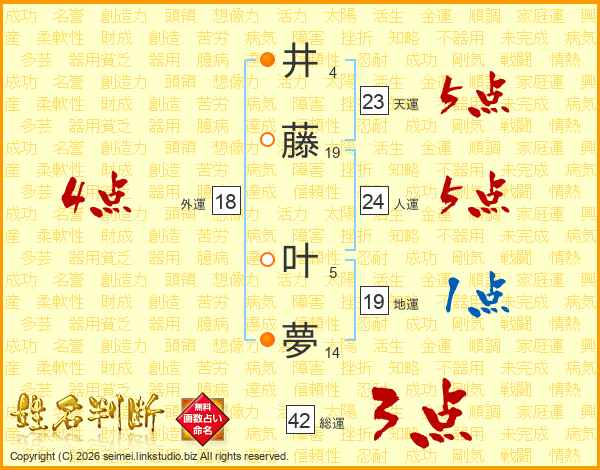 井(4画)藤(19画) 叶(5画)夢(14画)