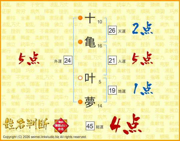 十(10画)亀(16画) 叶(5画)夢(14画)