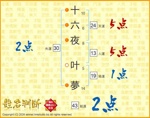十(10画)六(6画)夜(8画) 叶(5画)夢(14画)