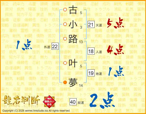 古小路叶夢さんの総運は40画の2点!