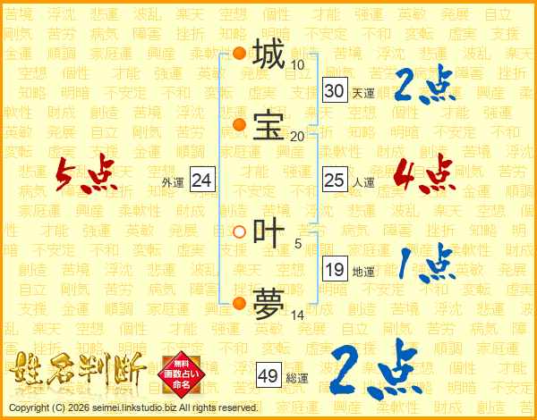 城宝叶夢さんの外運は24画の5点!