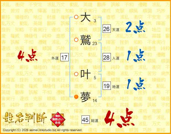 大鷲叶夢さんの総運は45画の4点!