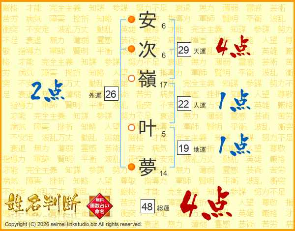 安次嶺叶夢さんの総運は48画の4点!