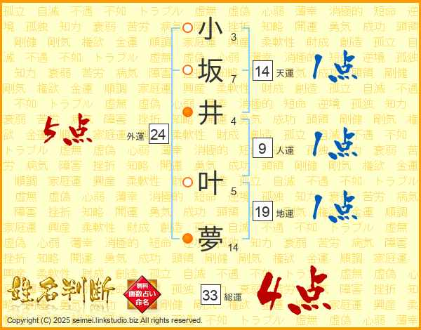 小坂井叶夢さんの総運は33画の4点!