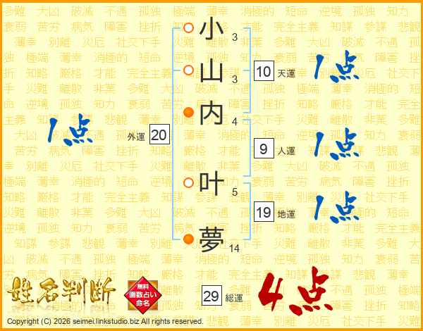 小山内叶夢さんの総運は29画の4点!