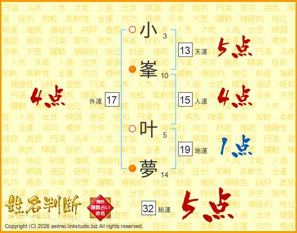 小(3画)峯(10画) 叶(5画)夢(14画)