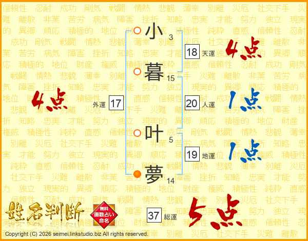 小(3画)暮(15画) 叶(5画)夢(14画)