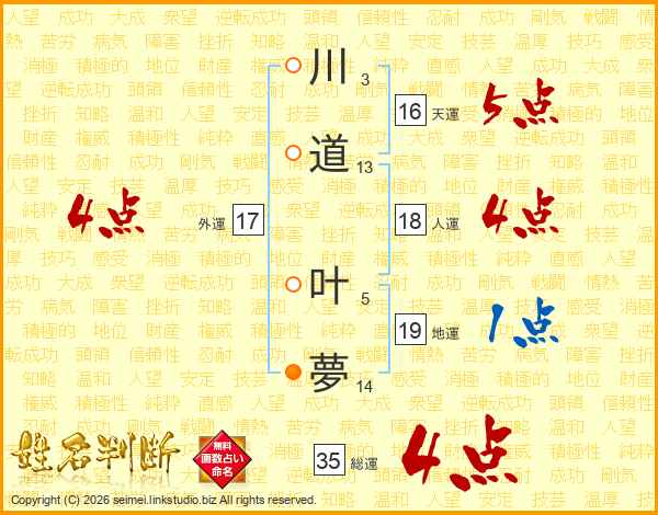川道叶夢さんの総運は35画の4点!