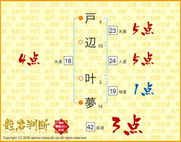 戸辺叶夢さんの外運は18画の4点!