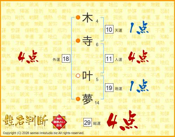 木寺叶夢さんの総運は29画の4点!