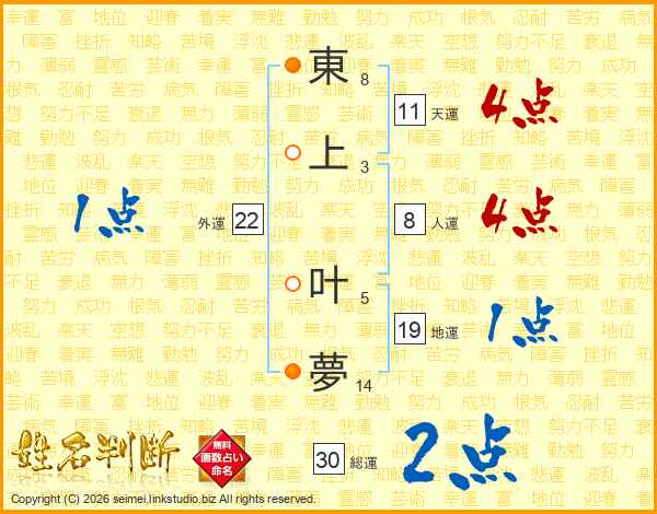 東上叶夢さんの総運は30画の2点!