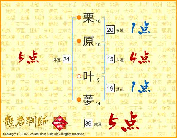 栗原叶夢さんの総運は39画の5点!