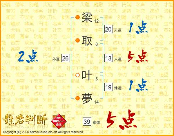 梁(12画)取(8画) 叶(5画)夢(14画)
