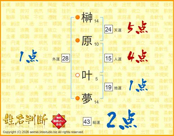 榊原叶夢さんの天運は24画の5点!
