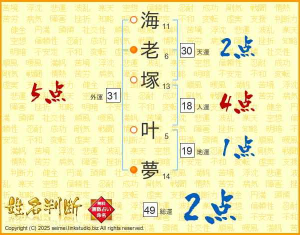 海老塚叶夢さんの総運は49画の2点!