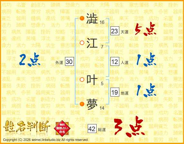 澁江叶夢さんの天運は23画の5点!