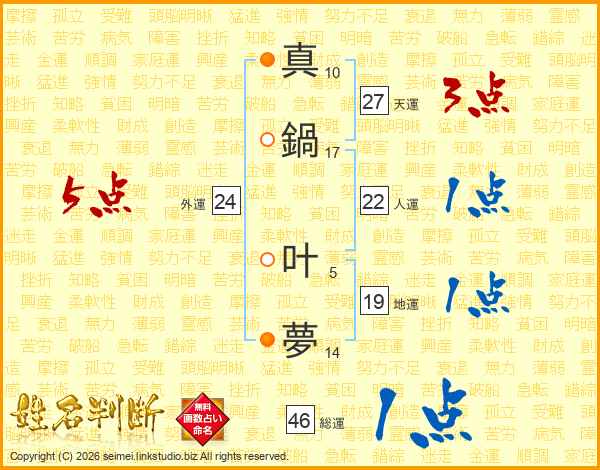 真鍋叶夢さんの総運は46画の1点!