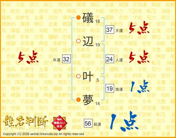 礒辺叶夢さんの天運は37画の5点!