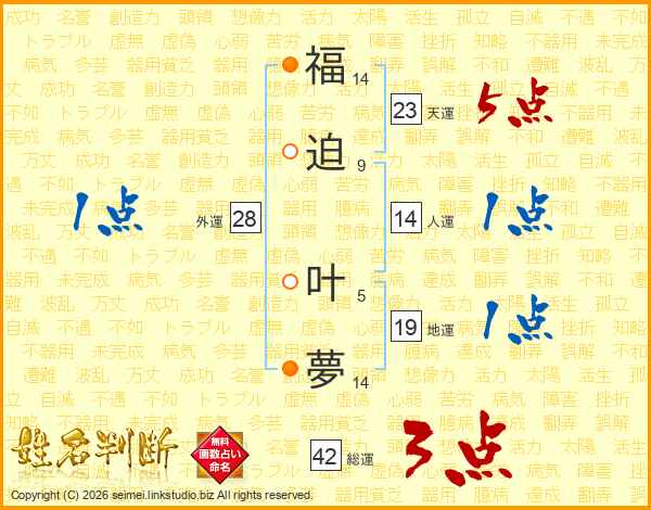 福迫叶夢さんの人運は14画の1点!