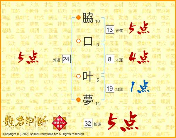 脇口叶夢さんの総運は32画の5点!