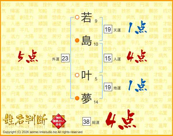 若(9画)島(10画) 叶(5画)夢(14画)
