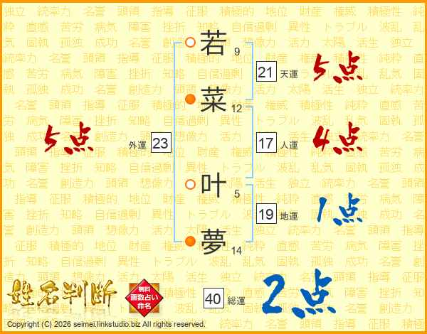 若菜叶夢さんの天運は21画の5点!