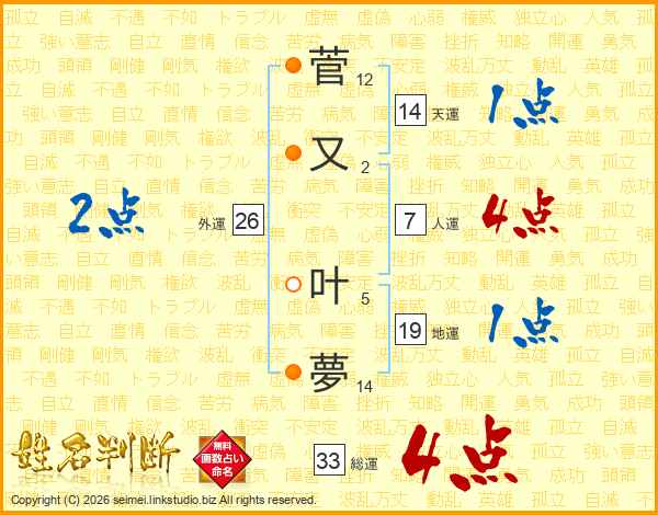 菅又叶夢さんの総運は33画の4点!