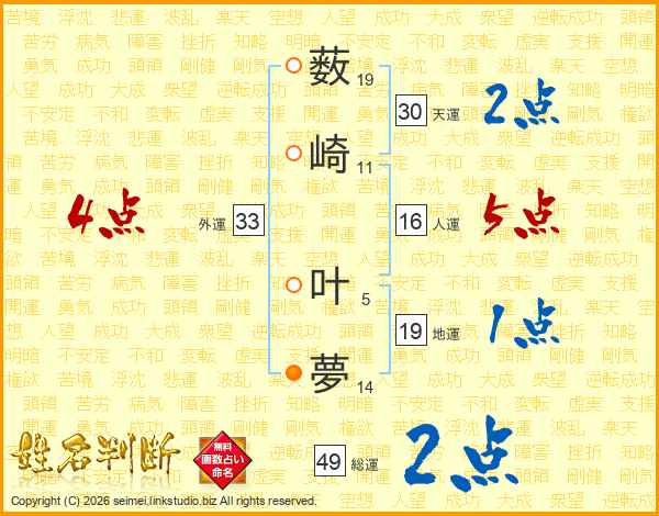薮崎叶夢さんの総運は49画の2点!