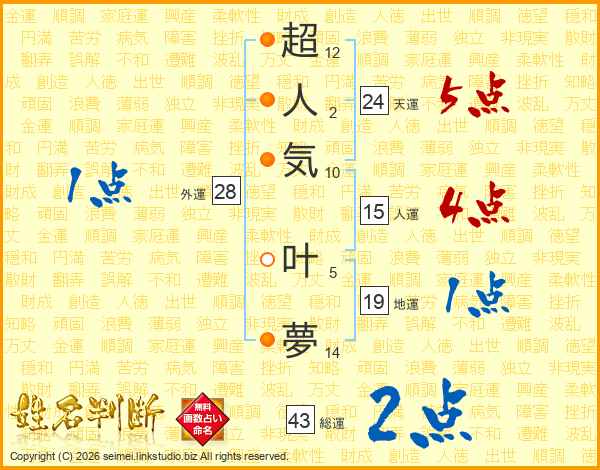 超人気叶夢さんの天運は24画の5点!