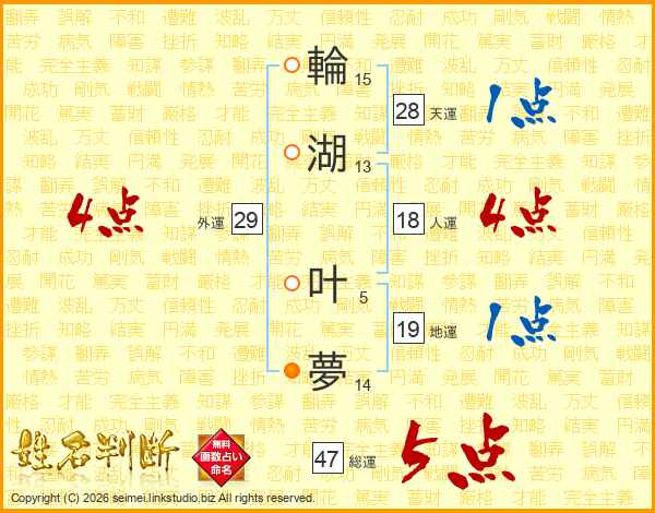 輪湖叶夢さんの総運は47画の5点!