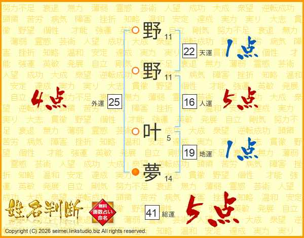野野叶夢さんの総運は41画の5点!