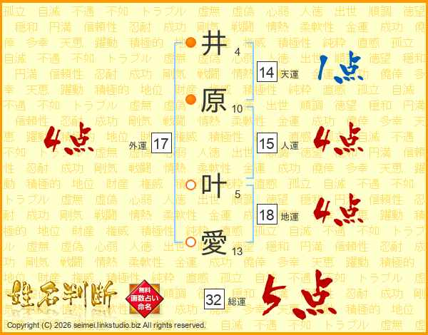 井原叶愛さんの総運は32画の5点!