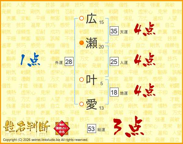 広瀬叶愛さんの人運は25画の4点!