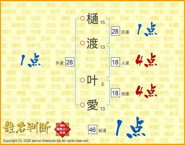 樋渡叶愛さんの総運は46画の1点!