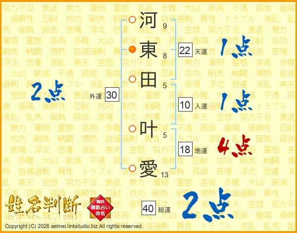 河東田叶愛さんの総運は40画の2点!