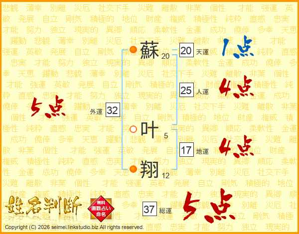 蘇叶翔さんの総運は37画の5点!
