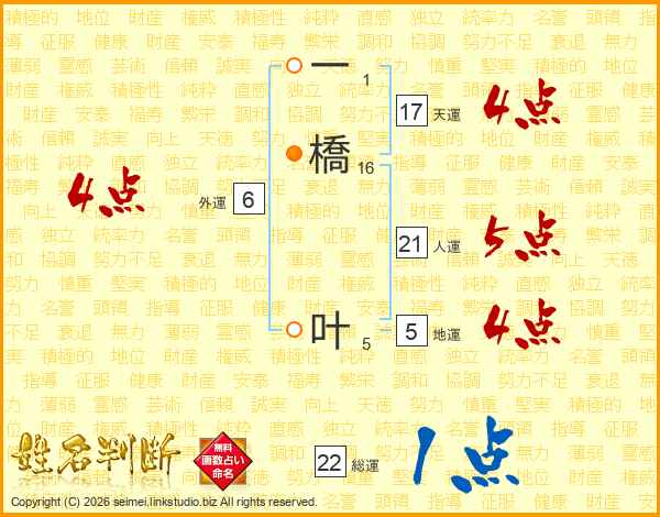 一(1画)橋(16画) 叶(5画)