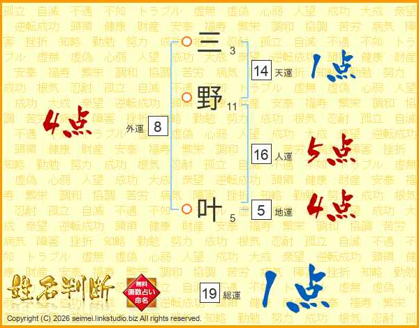 三野叶さんの天運は14画の1点!