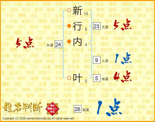 新行内叶さんの外運は24画の5点!