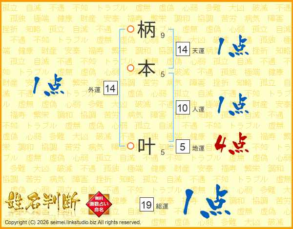 柄本叶さんの外運は14画の1点!