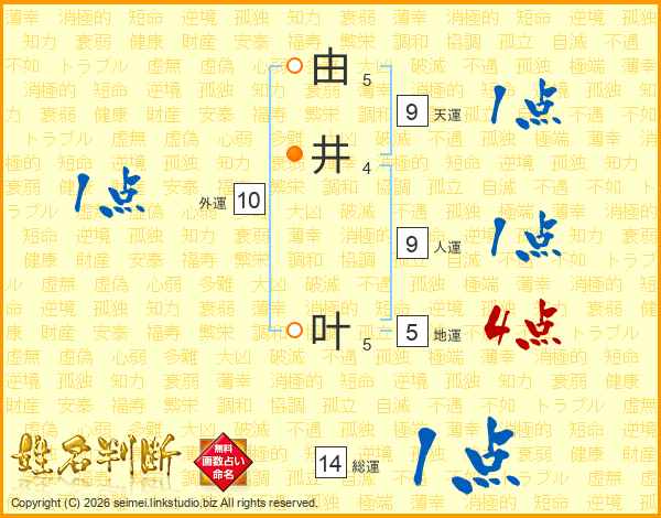 由井叶さんの天運は9画の1点!