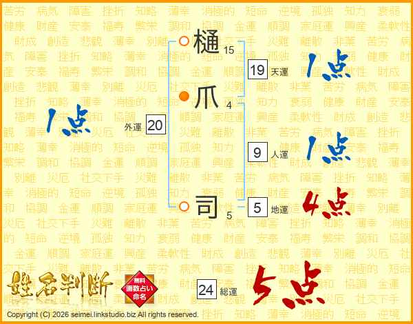 樋爪司さんの総運は24画の5点!