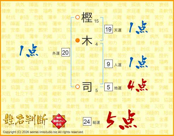 樫(15画)木(4画) 司(5画)