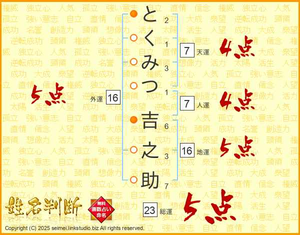 とくみつ吉之助さんの総運は23画の5点!