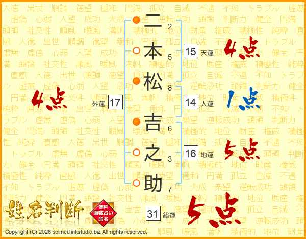 二(2画)本(5画)松(8画) 吉(6画)之(3画)助(7画)