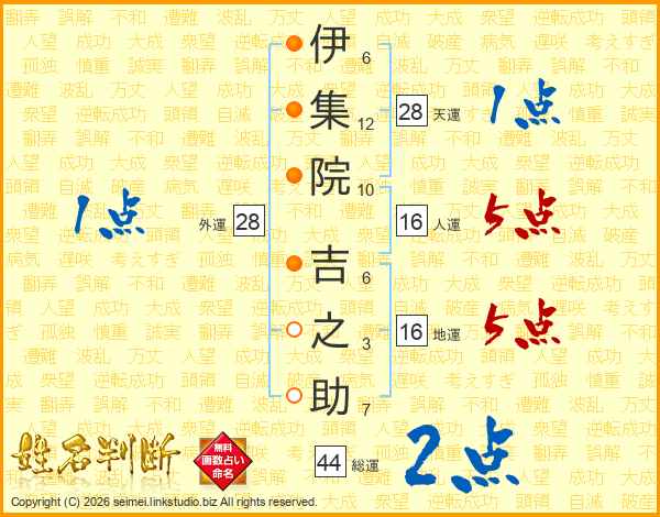 伊集院吉之助さんの総運は44画の2点!